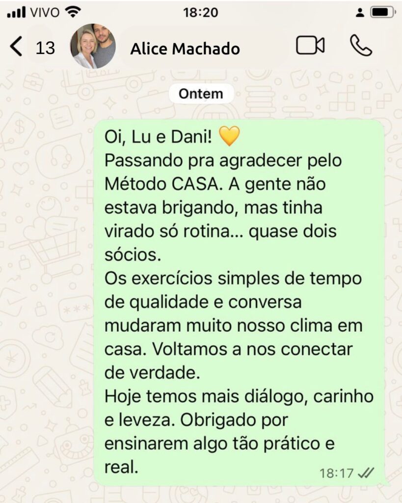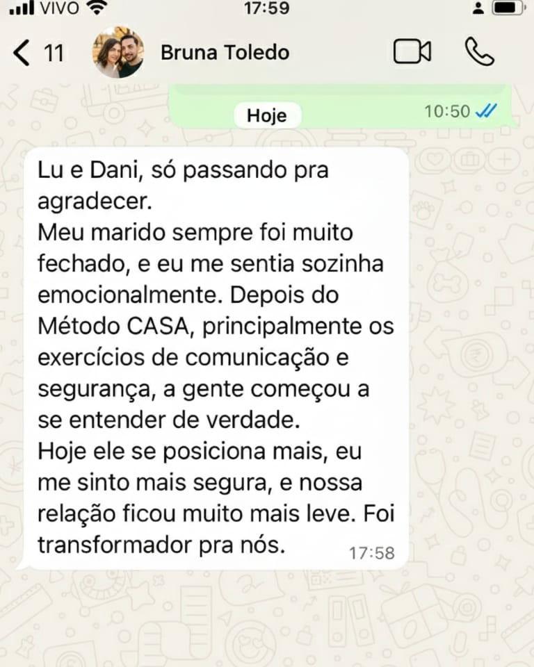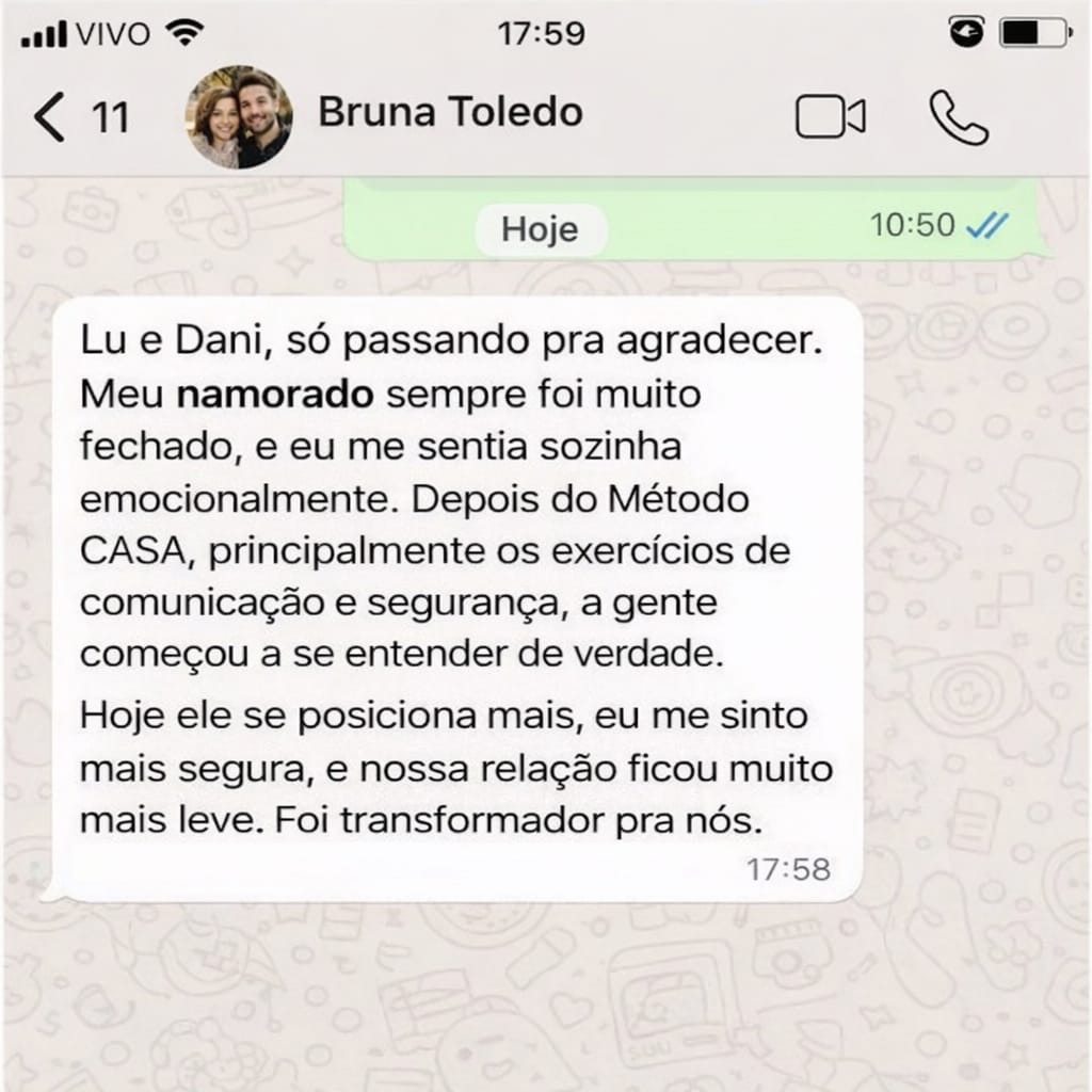 O Guia do Método CASA foi criado para casais em diferentes fases: namoro, noivado ou casamento. O que importa é a disposição de viver um relacionamento mais leve e saudável.